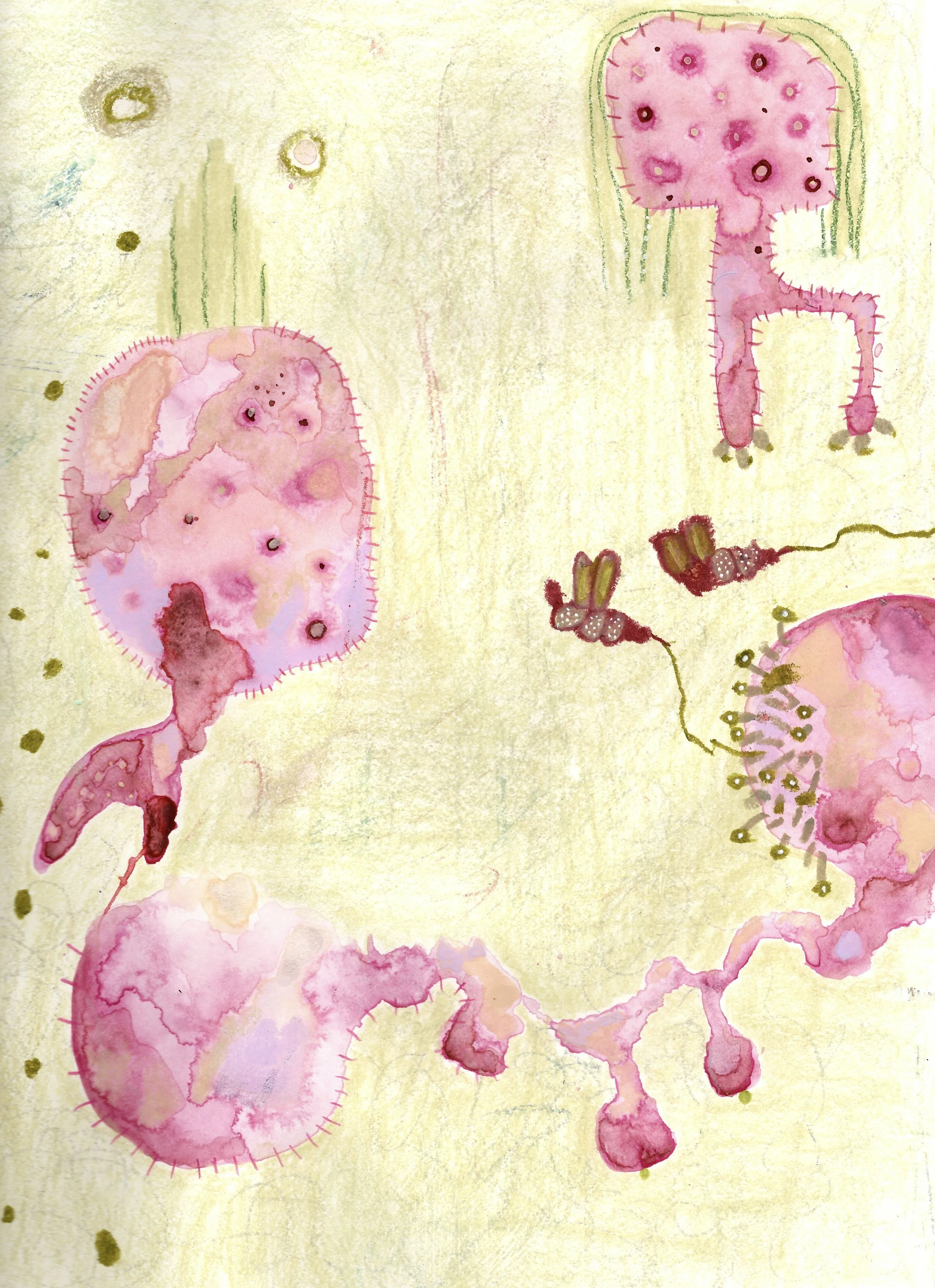Kindly Swelling (2022, 9x12, watercolor, oil pastel, colored pencil, ink on paper)